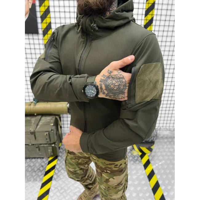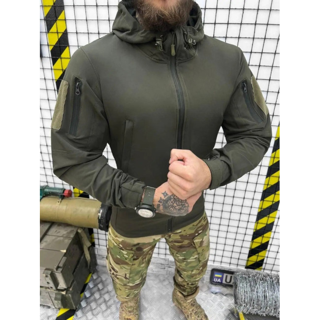Осіння тактична куртка колір олива з капюшоном (#SODSNS10756)