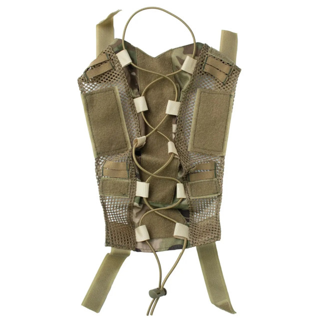 Кавер оснащений 8 липучками Velcro, які підходять для кріплення шевронів, тактичних ліхтарів або міток свій-чужий. Виготовлений з міцної тканини Rip-Stop в камуфляжі Multicam зі вставками сітки Coyote, він забезпечує надійний захист і функціональність.