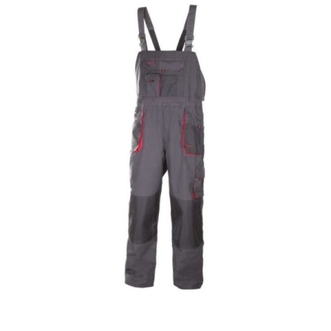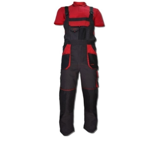 Завдяки поєднанню сталевого кольору з чорним і червоним, цей напівкомбінезон не лише практичний, а й стильний додаток до вашого робочого обладнання.