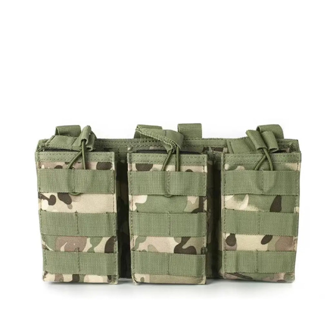 Підсумок відкритий військовий потрійний для магазинів камуфляж мультикам з кріпленням на систему Molle Mag31