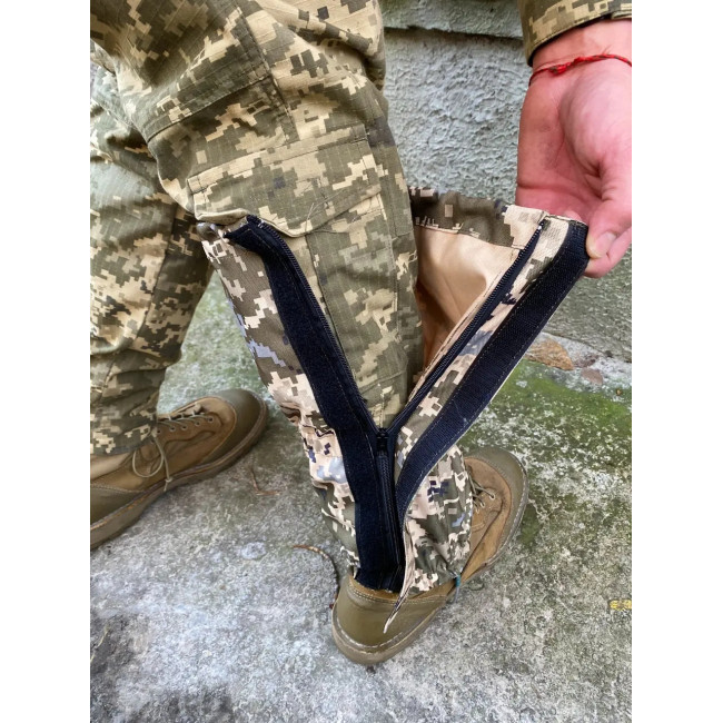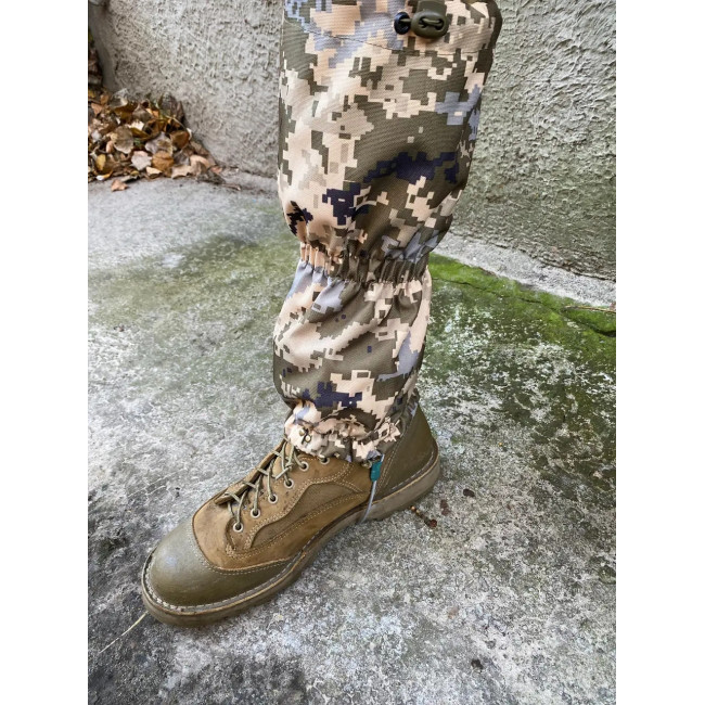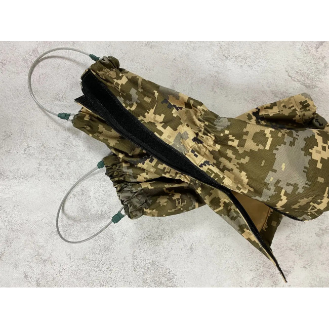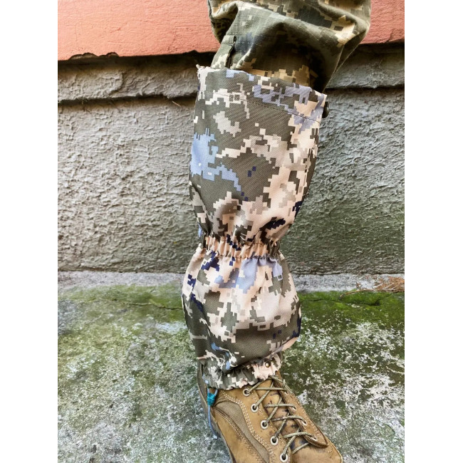 Тактичні гамаші-бахіли підходять для використання в будь-яку пору року, забезпечуючи надійний захист від снігу та дощу. Виготовлені з камуфляжного матеріалу Оксфорд 600 DEN із забарвленням "піксель".
