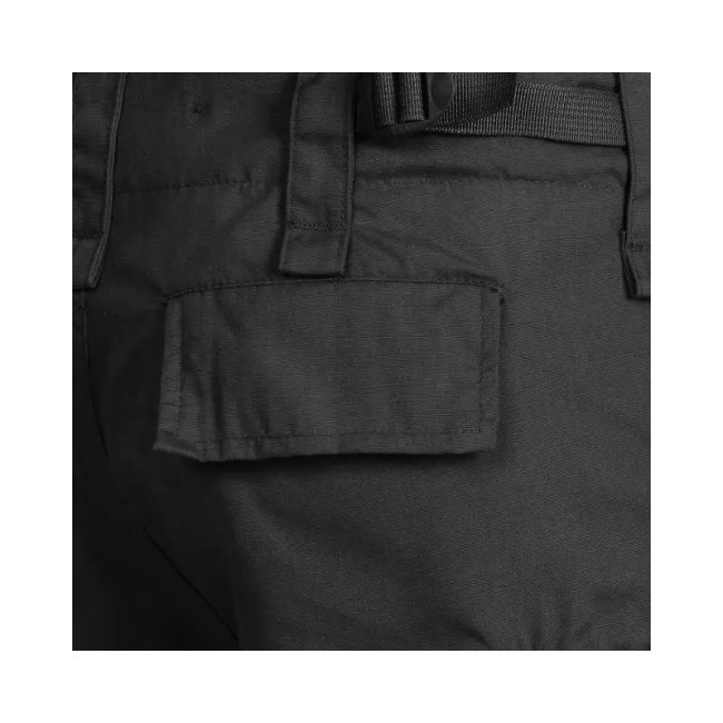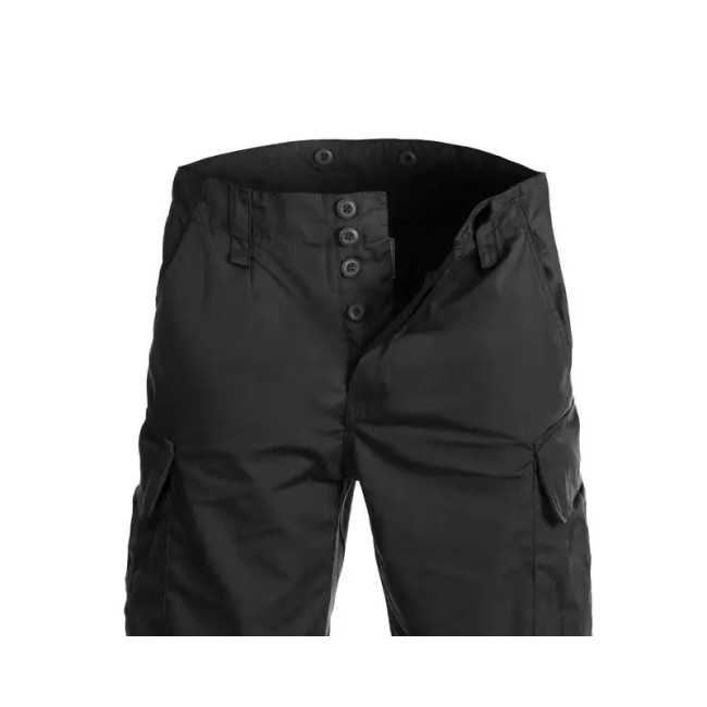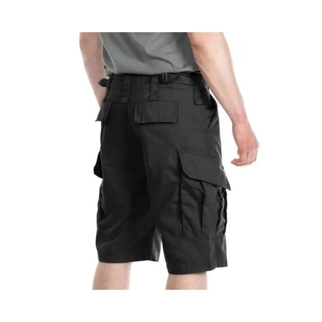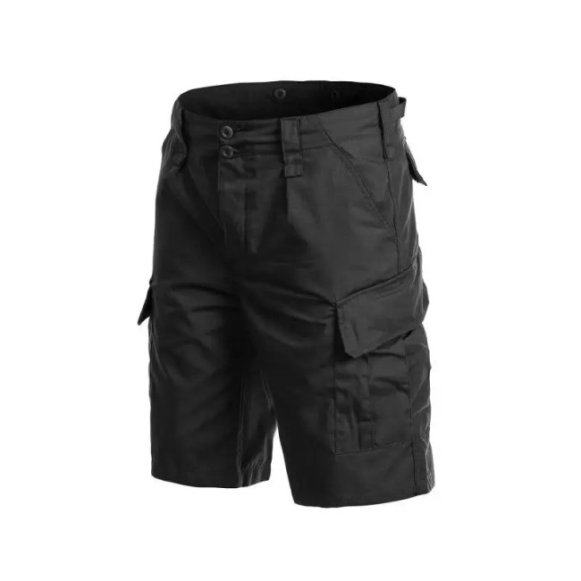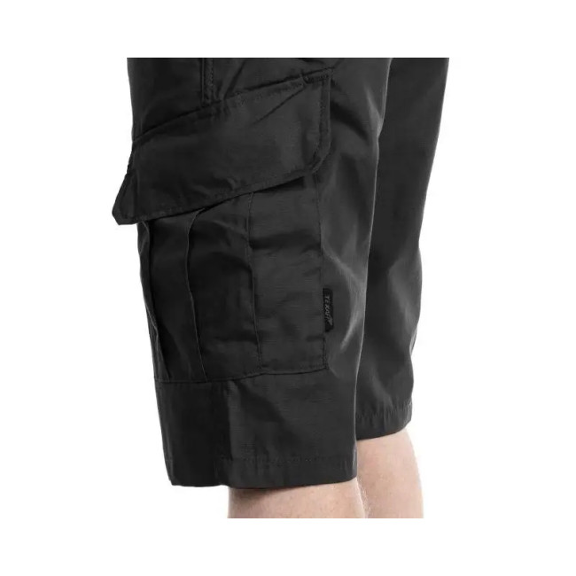 Ці практичні літні шорти в чорному кольорі стануть надійним і зручним вибором для активного відпочинку. Виготовлені з суміші поліестеру та бавовни, вони поєднують у собі міцність і легкість, а також приємність на дотик. Модель використовує плетіння RipStop, яке робить матеріал стійким до розривів, забезпечуючи довговічність. Крій з посиленнями на сідницях і промежині робить їх дуже зносостійкими.