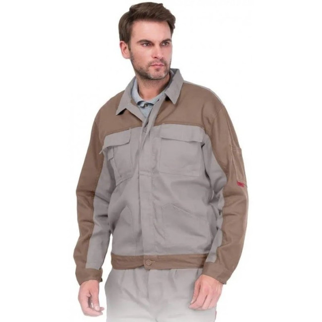 Літній робочий костюм з шортами ідеально підходить для будівельників, монтажників, електриків, сантехніків та працівників складу. Комплект складається з куртки та шортів, виготовлених з міцної бавовняної тканини сірого та бежевого кольорів.